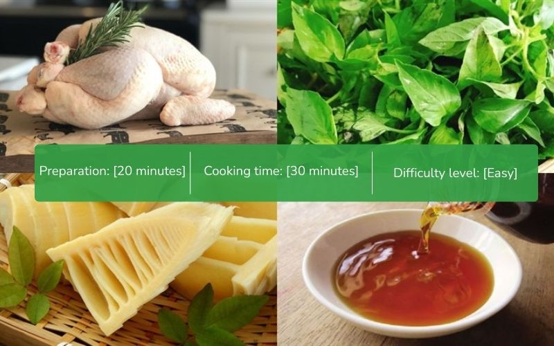 To make authentic chicken hot pot with basil leaves and sour bamboo shoots, you need to prepare all the fresh ingredients. Choosing quality ingredients will help the broth become sweet and savory, the chicken tender, and the dish fragrant with the distinctive aroma of basil leaves.