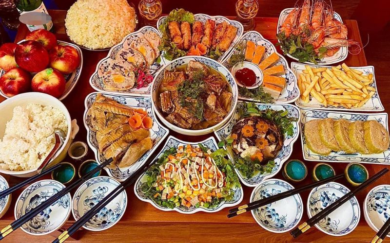 Depending on family circumstances, the offering tray can be vegetarian or non-vegetarian, as long as it is complete and solemn, helping the homeowner easily visualize what to arrange on the altar during Tet.