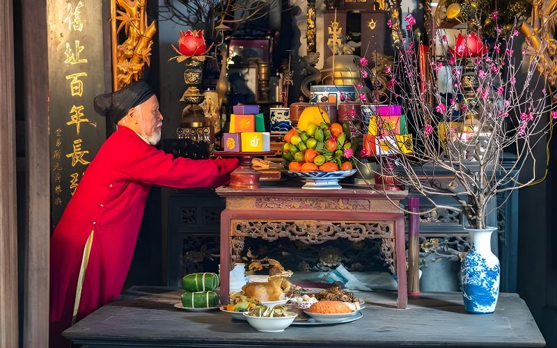 Before arranging the ancestral altar for Tet (Lunar New Year), the person performing the ritual should maintain good personal hygiene, dress neatly, and smell pleasant. This is not only a matter of spiritual courtesy but also demonstrates respect, contributing to a solemn atmosphere for the ancestral altar during the first days of the new year.
