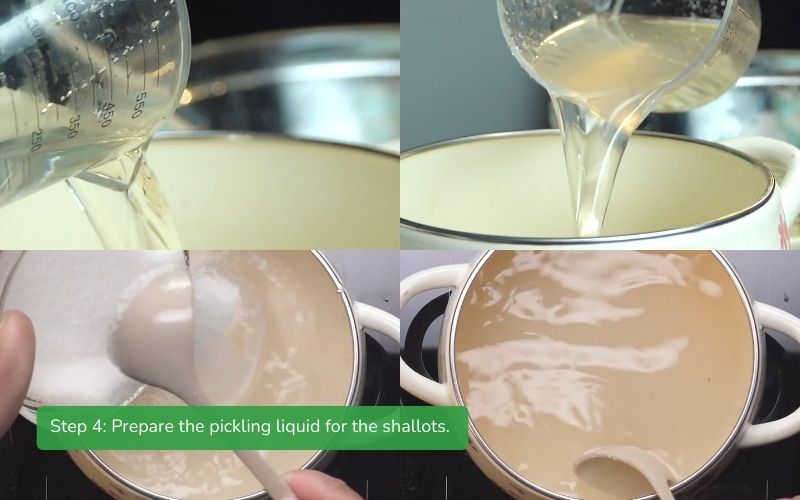 Prepare the brine for pickling shallots.
