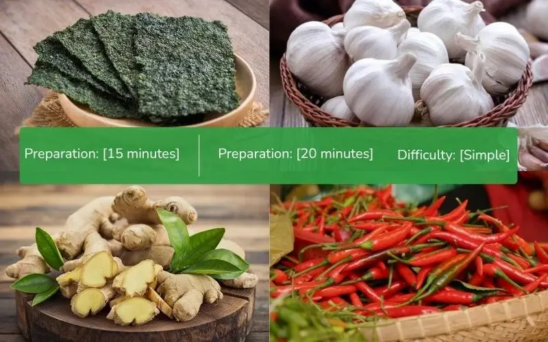 Fried seaweed with garlic is a delicious snack that’s crispy, flavorful, and incredibly good for you, thanks to its high mineral and fiber content. This simple dish can be enjoyed as a snack or served with rice. The mild spiciness of chili combined with the fragrant aroma of garlic and ginger makes this dish even more appealing.