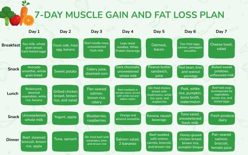 7-Day Muscle Gain and Fat Loss Meal Plan