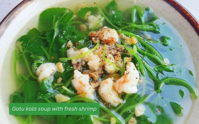 Dried shrimp brings a distinctive, salty and strong sea aroma. When cooked with pennywort, the broth is clear but the taste is very rich, sweet and refreshing. Pennywort and dried shrimp soup with pennywort is soft but still green, dried shrimp is rich, salty and fragrant, eaten with hot rice is extremely delicious.