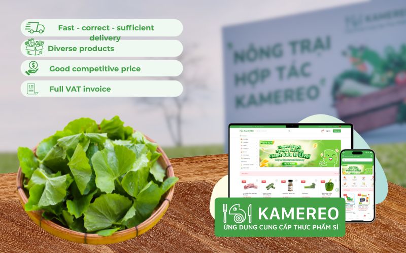Kamereo also brings great advantages to F&B businesses thanks to its simple, easy-to-track online ordering system, along with the ability to deliver quickly within the day. Businesses can order large quantities at competitive wholesale prices, clear contracts and full VAT invoices, supporting cost optimization and accounting work. Professional, transparent working processes and 24/7 customer care support help kitchens operate smoothly and without interruption of raw material sources. With Kamereo, you can be completely assured of the quality of pennywort as well as all fresh items provided every day.