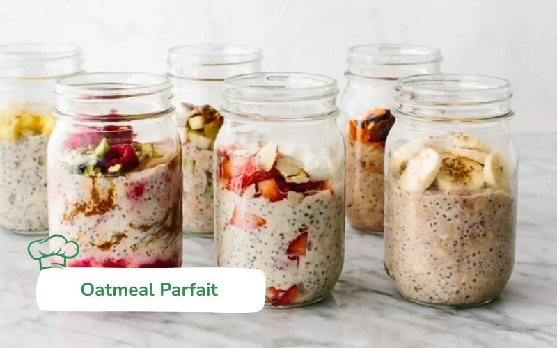 Oatmeal parfait is a perfect choice for a healthy, nutritious breakfast without worrying about weight gain. The dish is a delicate combination of creamy oats, mildly tart yogurt, and sweet fresh strawberries.