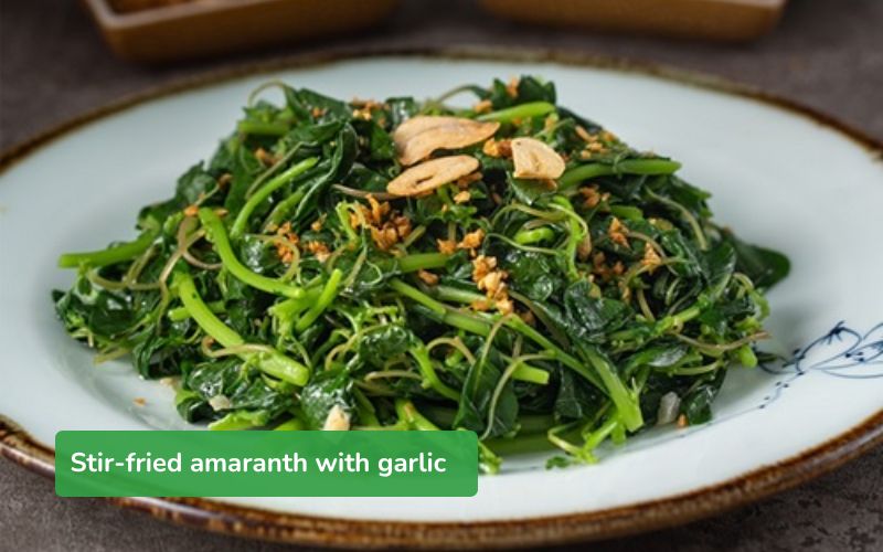 Stir-fried amaranth with garlic is a familiar dish, loved for its rich, aromatic flavor and extremely easy to prepare. Fragrant fried garlic combined with amaranth creates an attractive stir-fry dish, adding fiber, aiding digestion and increasing resistance.