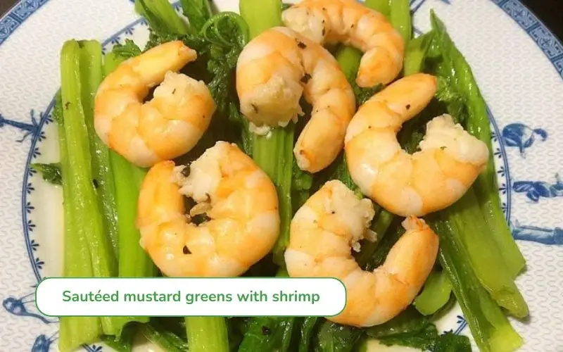 Stir-fried mustard greens with shrimp create a harmonious flavor between plump, sweet shrimp, crisp fresh greens, and a light seasoning, making for a delicious and nutritious meal. When you eat it, you’ll feel the natural sweetness of the shrimp, the crispness of the greens, and the subtle aroma of garlic and scallions.