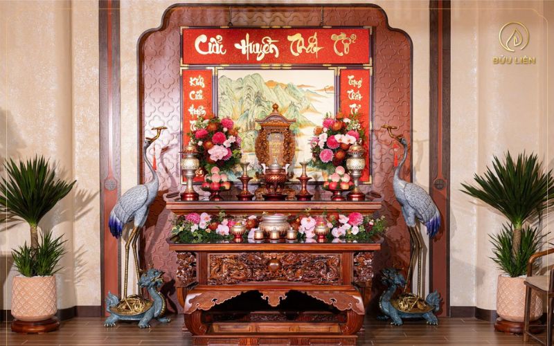 - Sử dụng một số vật phẩm phong thủy phù hợp để tăng tính thẩm mỹ trong bài trí bàn thờ.