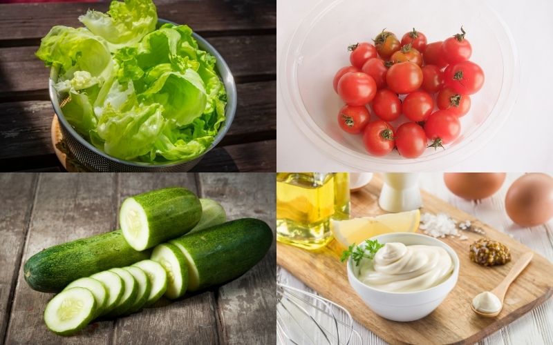 Nguyên liệu làm salad xà lách dưa chuột cà chua