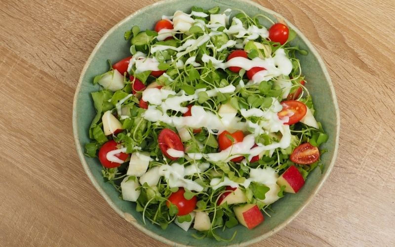Nếu bạn muốn làm salad rau xà lách có vị béo nhẹ, dễ ăn thì salad trộn mayonnaise là lựa chọn phù hợp, đặc biệt được trẻ em và người lớn tuổi yêu thích.